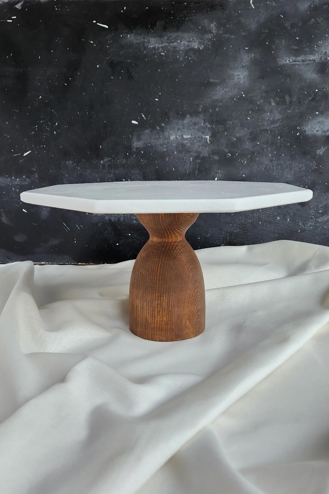AMBER - Mermer Sekizgen Stant - Koyu Renk Ahşap Ayaklı