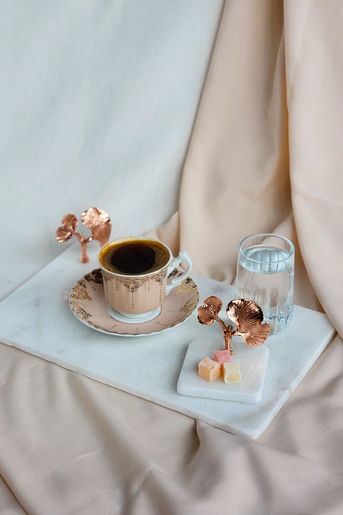 Damat Kahvesi Fincan Seti - Altın Ginko Figürlü