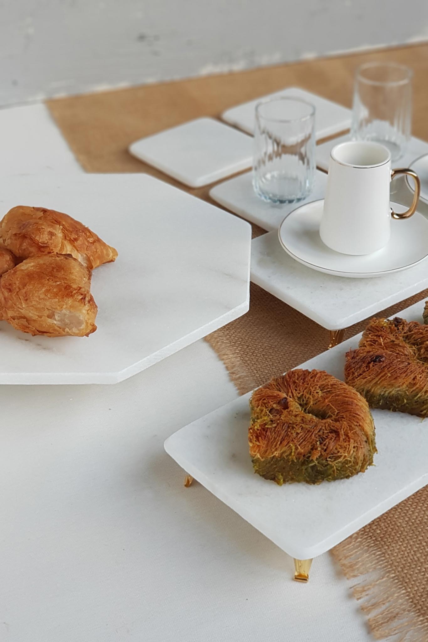AKASYA Mermer Söz & Nişan Tepsisi - Altın Kulplu